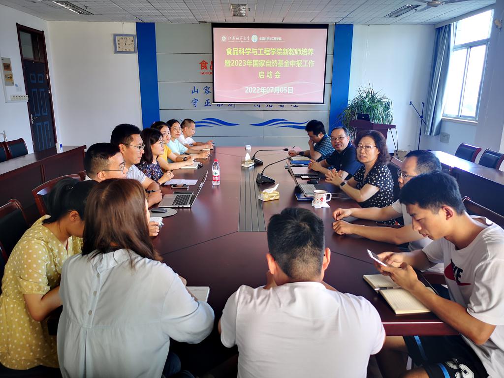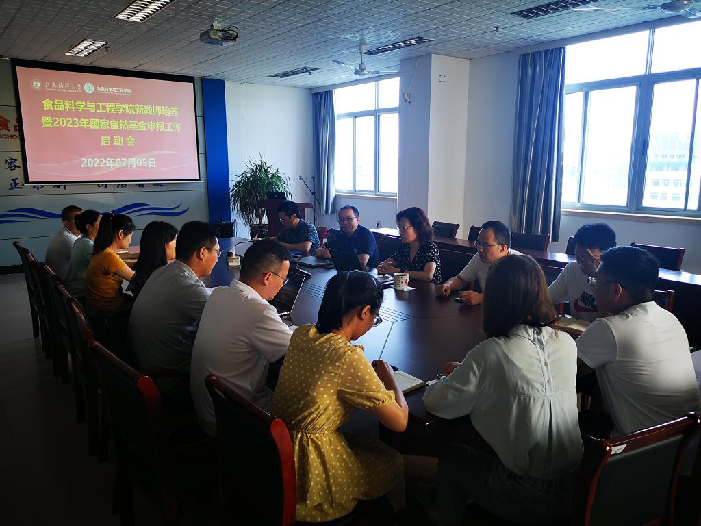 2022年7月5日下午,食品科学与工程学院在主楼606会议室召开新教师培养暨2023年国家自然科学基金申报工作启动会,副院长吴少杰、盘赛昆,生物工程系主任郭雷、食品工程系副主任王文彬以及卢静、侯晓月、杨光、庄林武、赵岩、陈金日、毕诗杰、王红丽等八位引进我院未满三年的新教师参加,会议由院长王淑军主持。