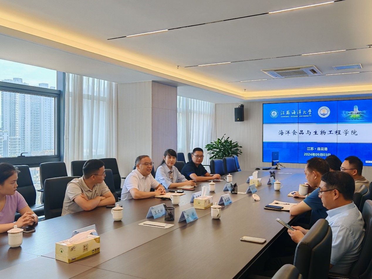 为深入推进科研合作,9月3日,海洋食品与生物工程学院副院长盘赛昆教授、孙颖颖教授和相关教师一行6人赴江苏省海洋资源开发技术创新中心开展调研交流。江苏海洋大学科技处副处长、连云区党组成员、中心常务副主任赵桂,中心副主任尚修成参加了座谈。