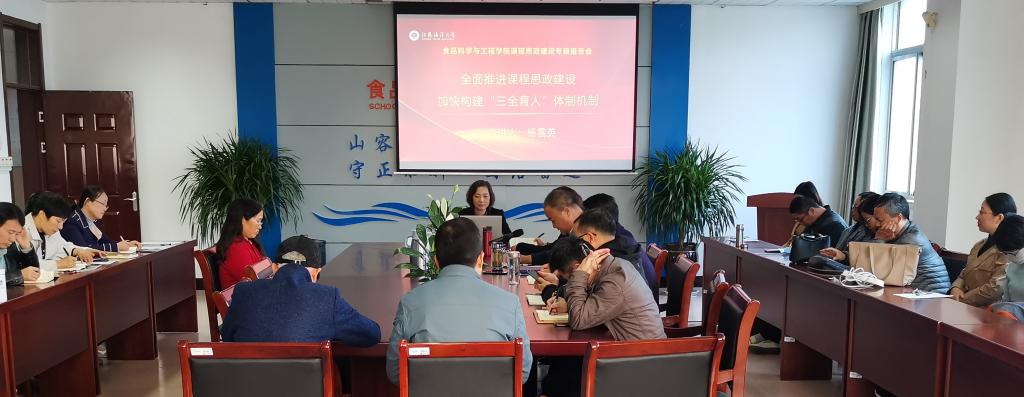 10月28日下午,我院在教学主楼606会议室召开了课程思政建设专题报告会。会议由党总支书记朱国良主持,全院教职工参加了会议。校党委宣传部长杨雪英教授应邀为全体教职工做了关于《全面推进课程思政建设,加快构建‘三全育人’体制机制》的专题辅导报告。