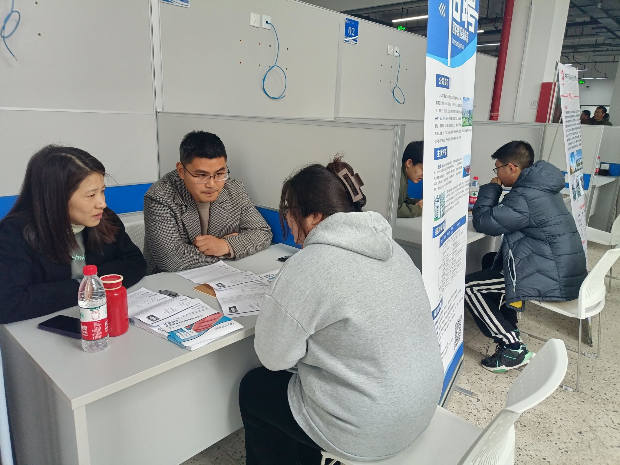学生党员一方面将自身作为就业宣传的移动站,另一方面在招聘会现场担任志愿者,为应聘同学提供纸、笔、文件袋等物品,做好应聘岗位指引、简历复印、现场秩序维护等工作,营造积极就业、充分就业的良好氛围。