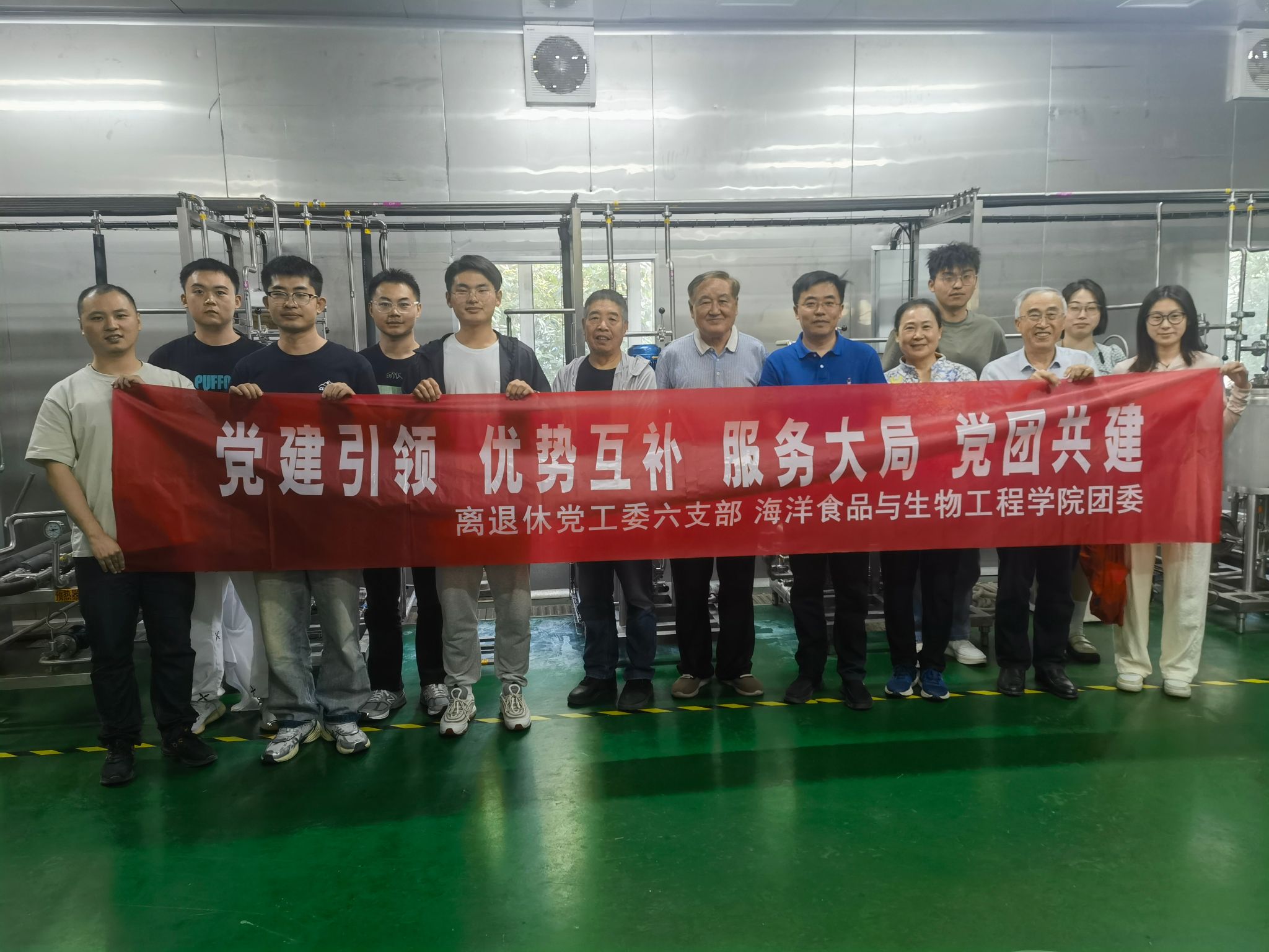 5月28日下午,江苏海洋大学离退休党工委第六党支部党员来到海洋食品与生物工程学院实验中心,与学院团委开展党建带团建活动,主题为“党建引领、优势互补、服务大局、党团共建”。