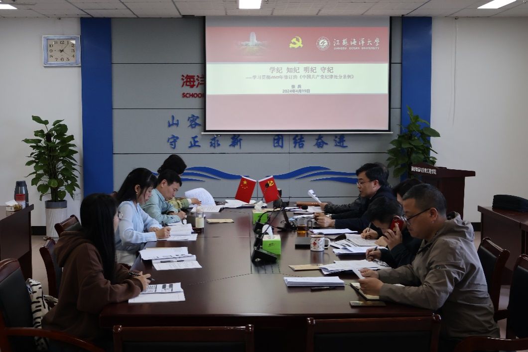 4月19日上午,海洋食品与生物工程院党委在主楼606会议室召开理论学习中心组学习会议,专题学习《中国共产党纪律处分条例》。学院党委理论学习中心组成员,党支部书记参加会议。会议由学院党委书记张兵主持。