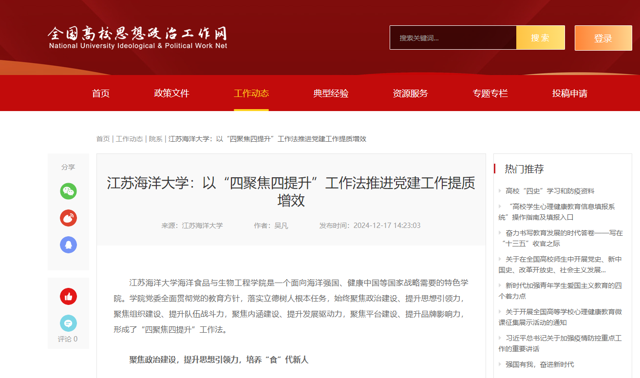 原文链接:江苏海洋大学:以“四聚焦四提升”工作法推进党建工作提质增效 - 党建统战 - 全国高校思想政治工作网