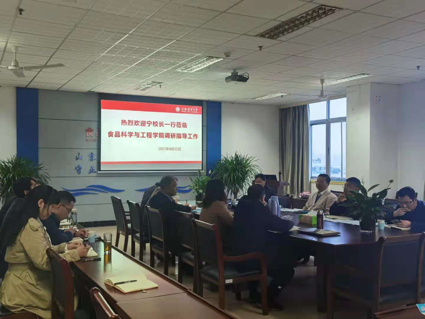 4月22日下午,校长宁晓明携校长办公室、人事处相关领导到食品科学与工程学院进行调研指导工作,就加强师德师风建设、提高教师科研产出率、聘期考核和岗位聘任等问题进行调研。食品科学与工程学院全体领导班子成员、系(中心)主任、专业负责人参加调研会。