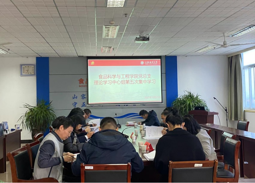 10月21日上午,食品科学与工程学院党总支理论学习中心组第五次学习在主楼606会议室进行。校纪委书记陈先宏出席学习会,学院党政领导班子成员、全体支部书记参加学习。学院党总支书记田德勇主持会议。