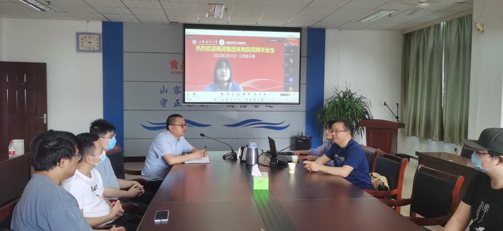 5月25日上午,雨润食品集团有限公司招聘宣讲会在主楼606会议室举办,公司人事科长徐纺做招聘宣讲。食品科学与工程学院副院长盘赛昆、党总支副书记郭利与近20名2022届本科与研究生毕业生,以线上线下相结合的方式共同参加了宣讲会。