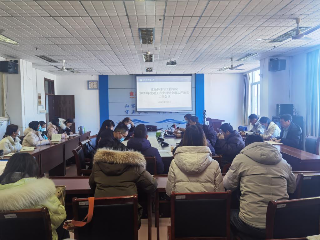 2023年2月15日下午,食品科学与工程学院在主楼606会议室召开2023年党政工作布置暨全面从严治党工作会议。学院领导班子和全体教职工参加会议,学院党总支书记张兵主持会议。