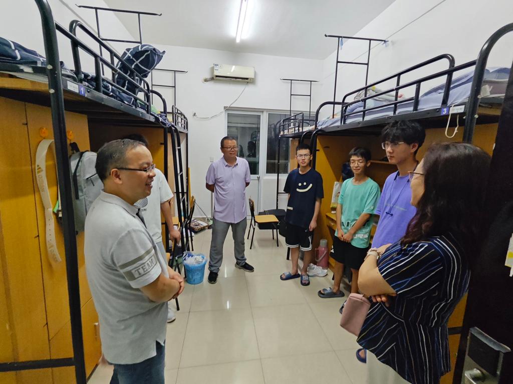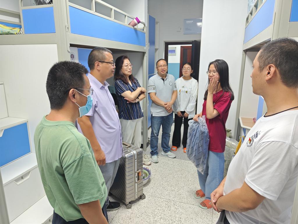 慰问结束后,学院领导班子成员分别带领班主任和辅导员走访各班级新生宿舍,看望2023级研究生与本科生。走访宿舍过程中,学院领导和老师与同学们亲切交谈,关心新生在校的生活、吃饭、睡眠等适应情况和遇到的问题,并耐心解答。此外,学院领导和老师也殷切希望同学们学好专业知识、投身科研、培养兴趣爱好,全面发展自己。同时强调宿舍用水用电安全和谨防电信诈骗。