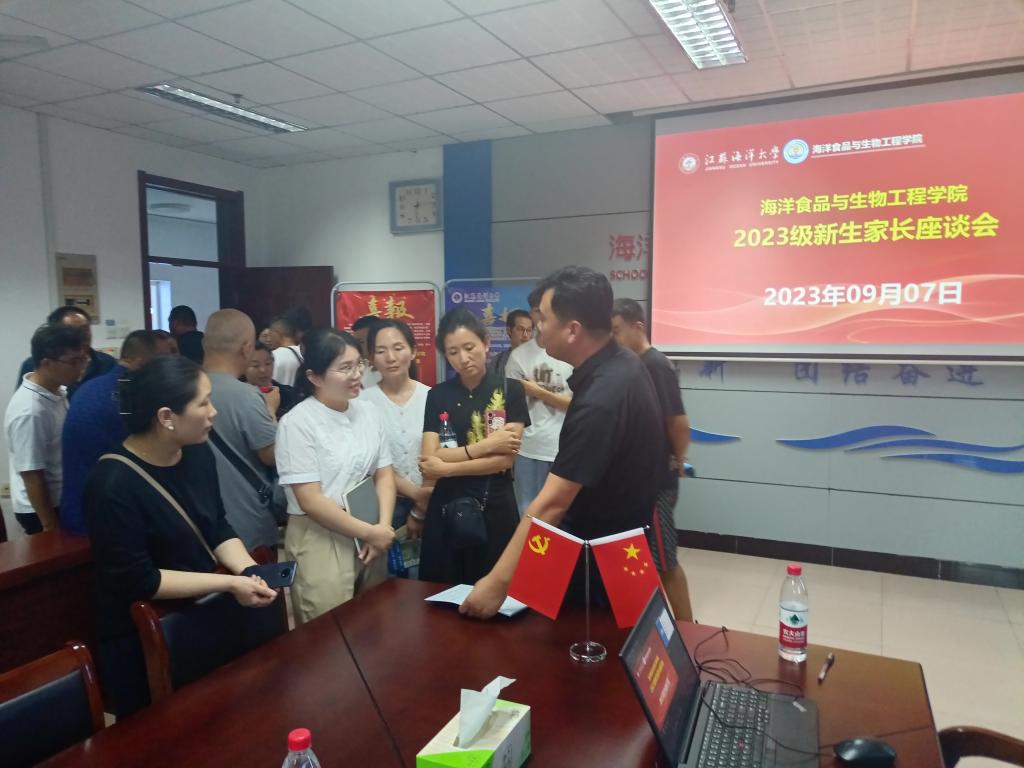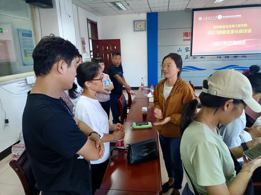 为落实立德树人根本任务,提高人才培养质量,形成家校育人合力,9月7日、9月8日下午,海洋食品与生物工程学院在主楼606召开2023级新生家长座谈会。学院党委书记张兵、院长王淑军、党委副书记郭利、副院长盘赛昆、副院长吴少杰、专业负责人、全体辅导员、新生班主任参加座谈会。会议由郭利主持,线上线下共计200余位家长共同参加。