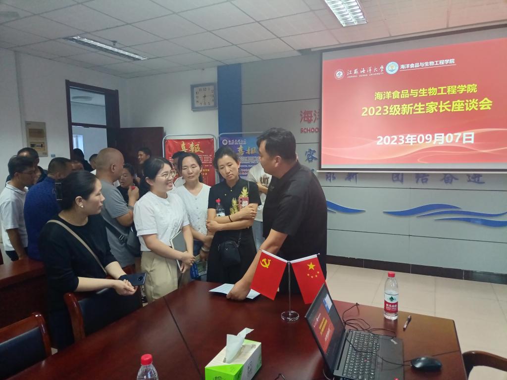 新生报到期间学院在迎新点设置海洋创新食品展,为新生家长发放新生入学指南。新生入学指南包含迎新工作安排、近两年学院考研情况、送给新生的话、班主任辅导员联系方式、学院办公室实验室分布图等。安排新生家长分批参观实验室,亲身感受学院的办学条件与科研实力,坚定学生家长对学校和孩子所学专业的信心。分批召开院领导班子、专业负责人、班主任、辅导员全程参加的新生家长座谈会,和140多位家长面对面交流,建立联系方式,做好答疑解惑,让新生家长对学院有了解,对孩子所学专业安心,对学院的培养放心,共同做好大一新生的教育培养工作。