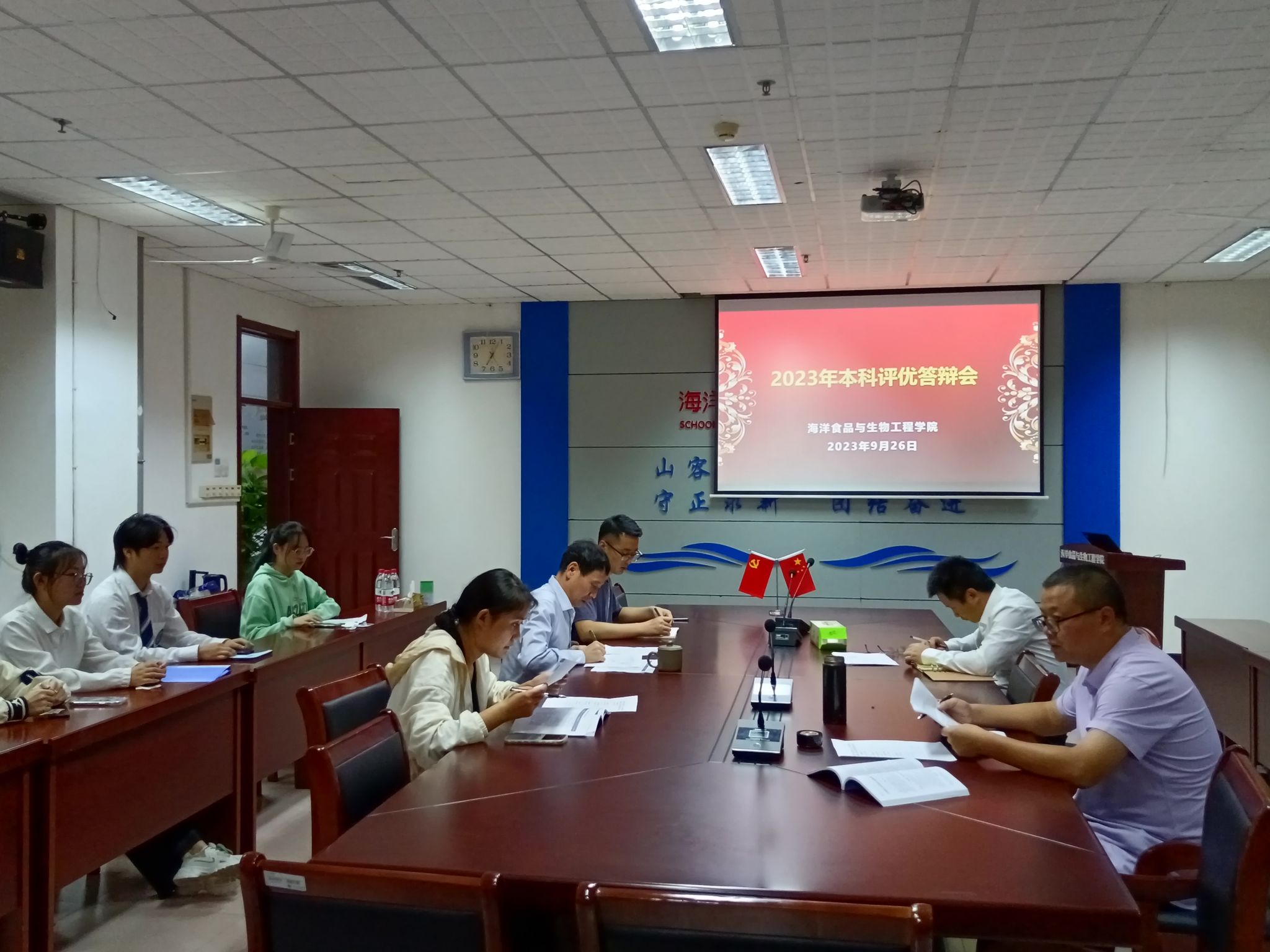 为营造良好的学习氛围,进一步加强我院学风建设,9月26日晚上,海洋食品与生物工程学院2023年先进班集体评优答辩会暨先进个人评审会在主楼606会议室召开。副院长吴少杰、副书记郭利、食品工程系支部书记邱春江、辅导员陈丽媛、辅导员杨鑫暖,作为评委参加评优答辩会。