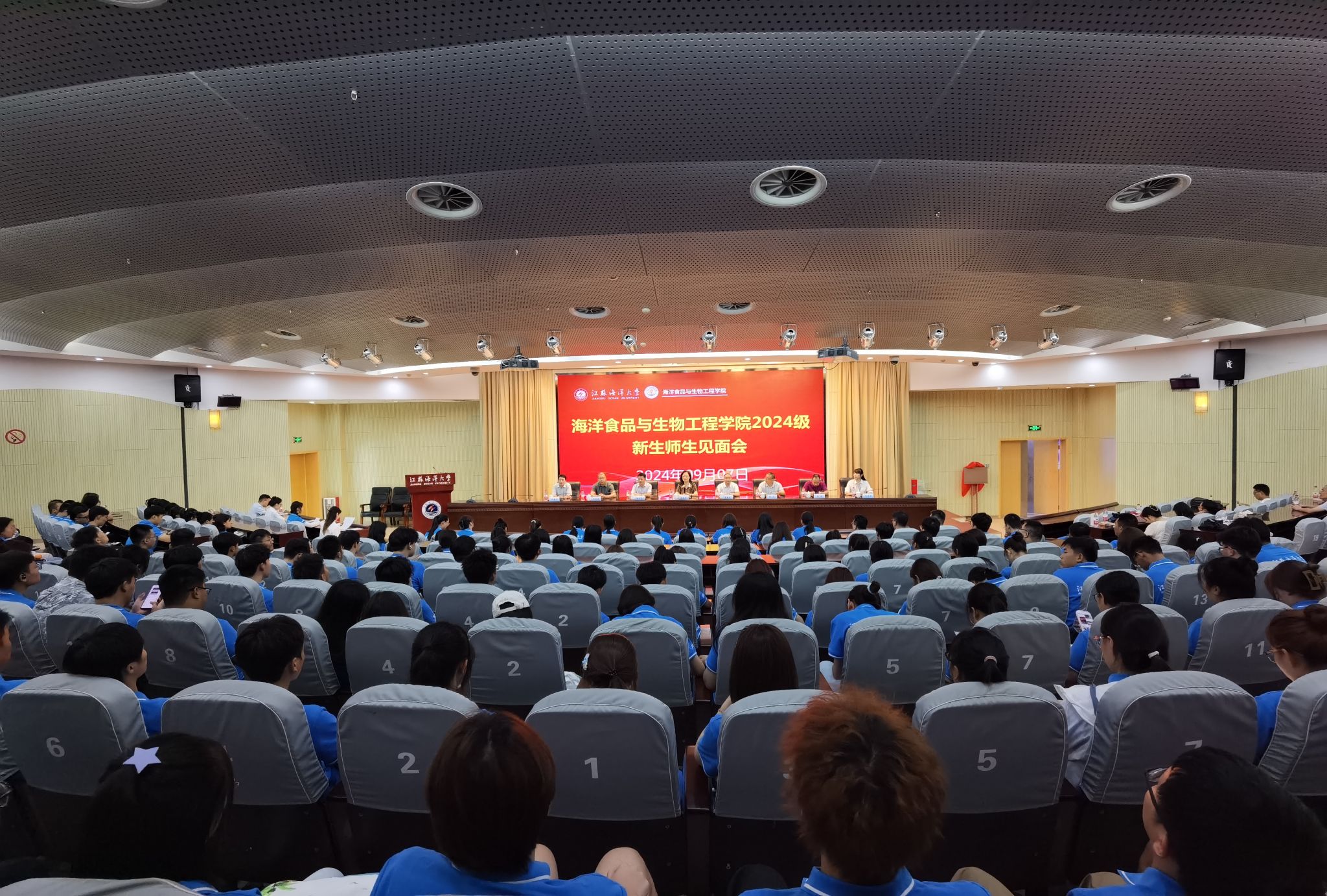 9月7日下午,海洋食品与生物工程学院2024级新生师生见面会在会议中心黄海厅举行。海洋食品与生物工程学院院长王淑军、党委副书记郭利、副院长盘赛昆、副院长吴少杰以及全体系主任、系支部书记、本科新生班主任、研究生新生导师、全体辅导员、全体2024级本科与研究生新生共同参加师生见面会。会议由郭利主持。