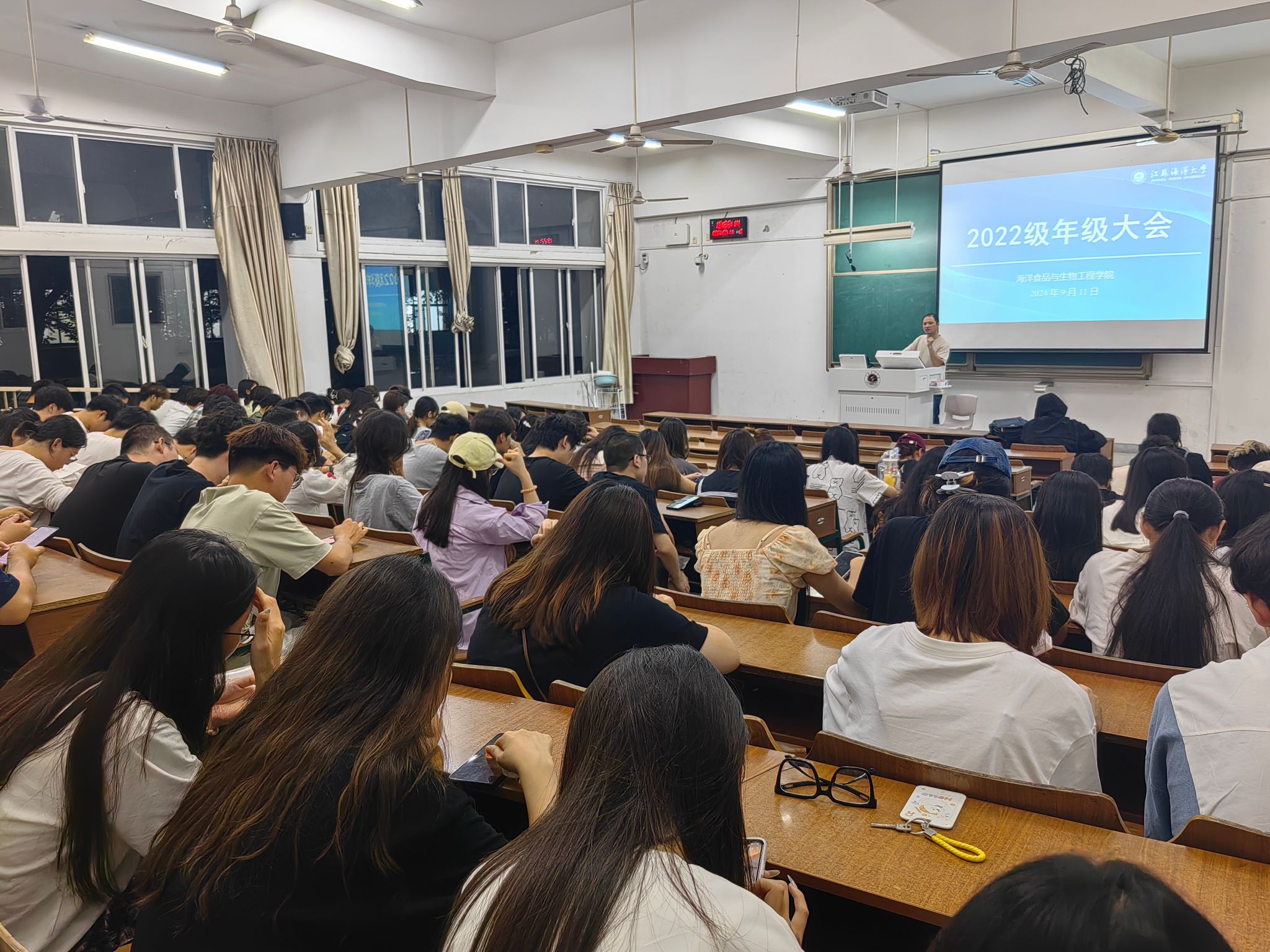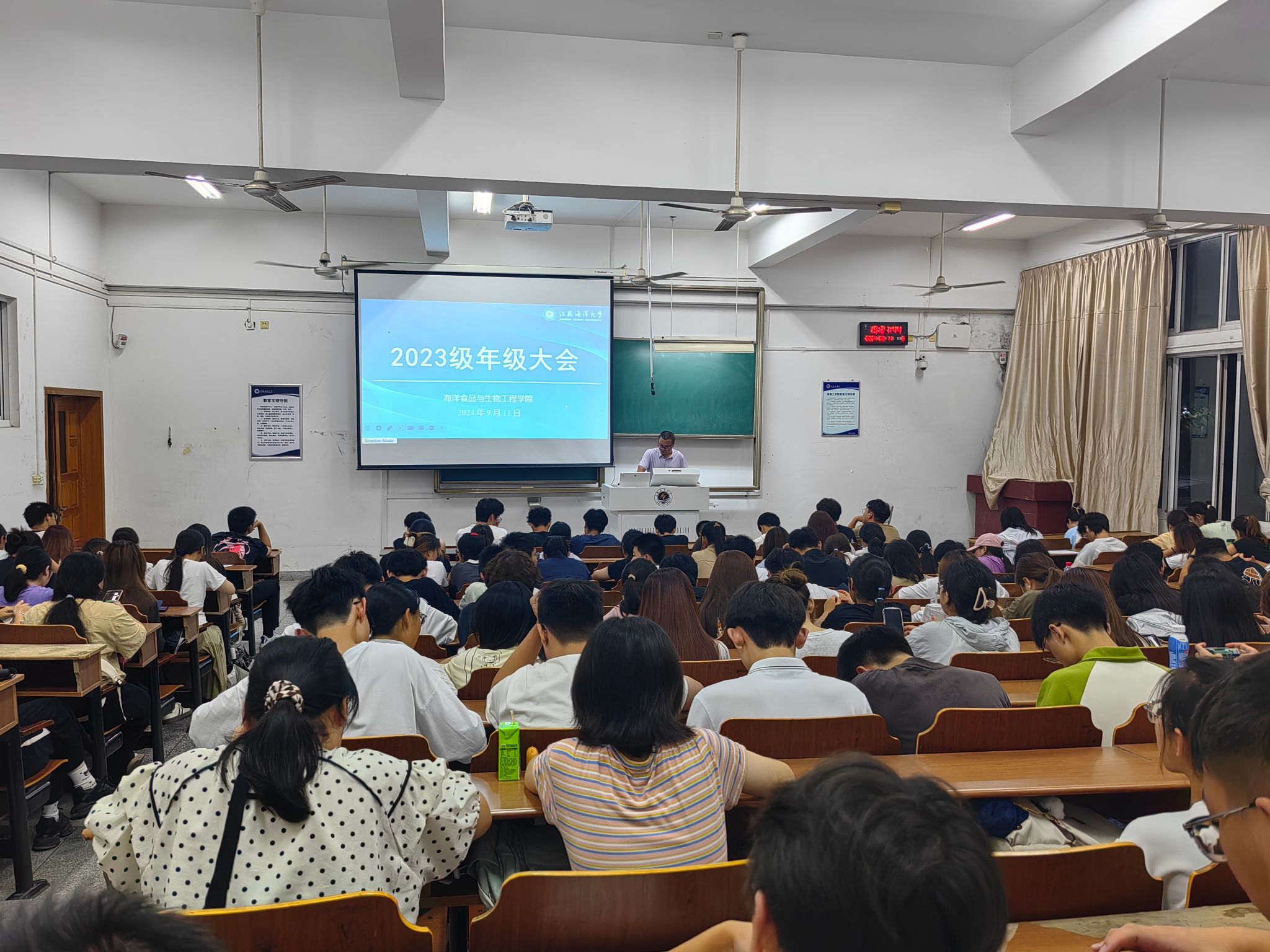 为全面做好新学期工作,引导学生明确目标健康成长,海洋食品与生物工程学院9月11日晚上在文通楼124、126教室分别召开了2022级、2023级学生年级大会。学院党委副书记郭利,辅导员吴凡、陈丽媛参加会议。