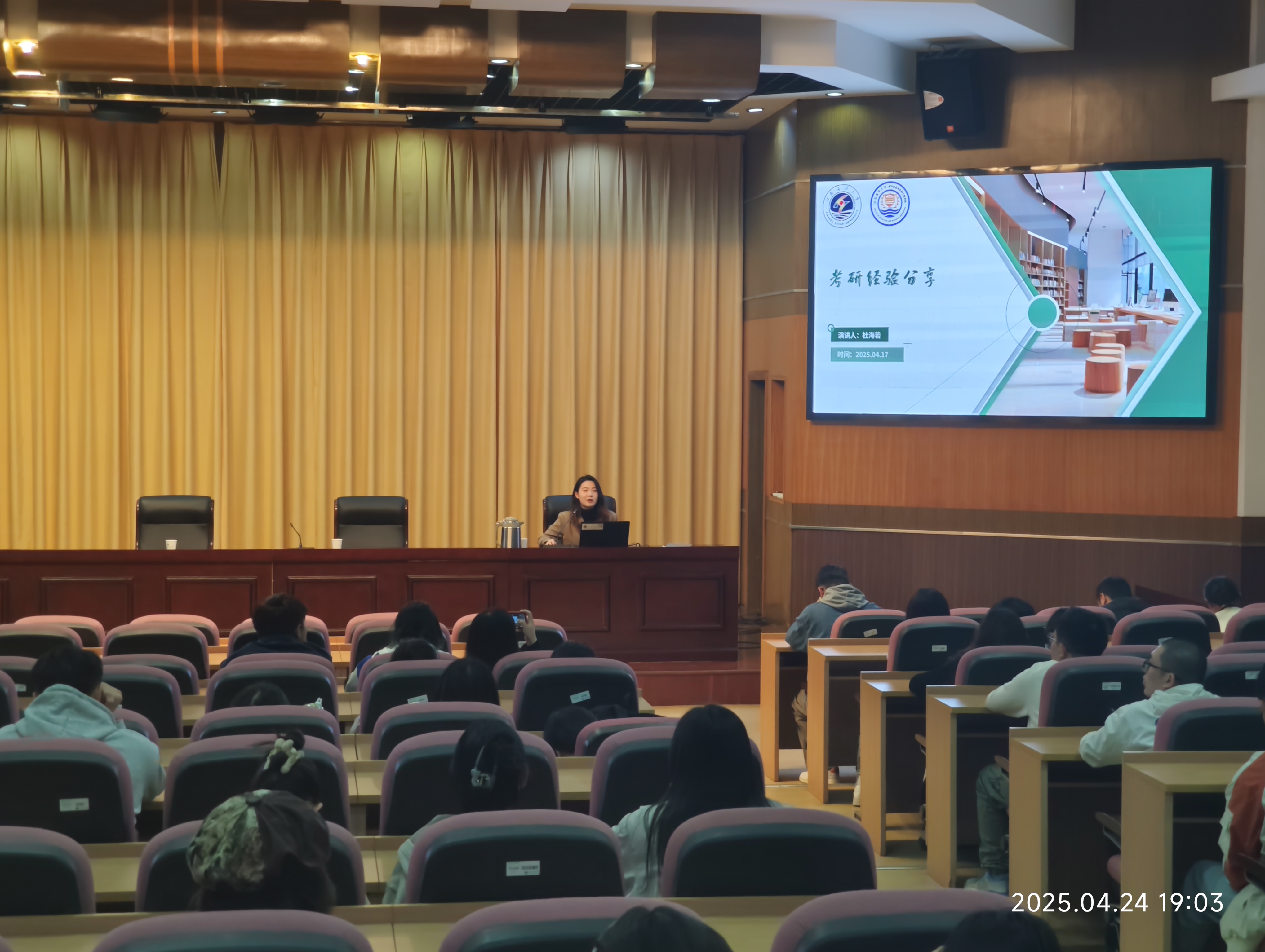 为帮助考研学子科学规划考研目标、掌握备考策略、提升心理调适能力,海洋食品与生物工程学院于4月24日晚在文博楼报告厅成功举办考研经验交流会。学院副院长盘赛昆、党委副书记郭利、全体辅导员、考研拟录取学生代表杜海若、吴玉婷以及全体2022级本科生共同参与。