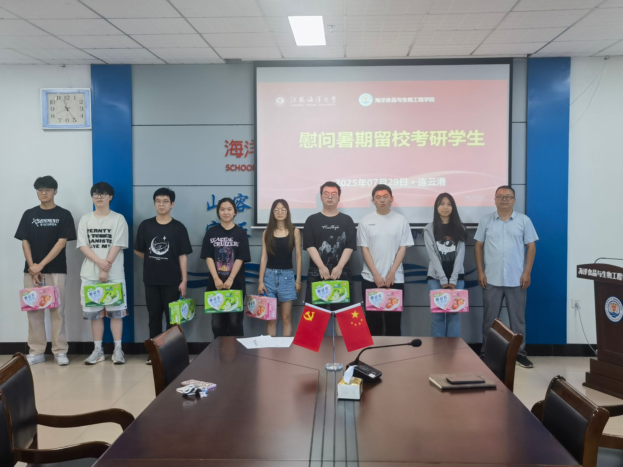 为关怀暑期留校备战考研的学生,7月29日,海洋食品与生物工程学院在文达楼606会议室开展暑期留校考研学生慰问活动。