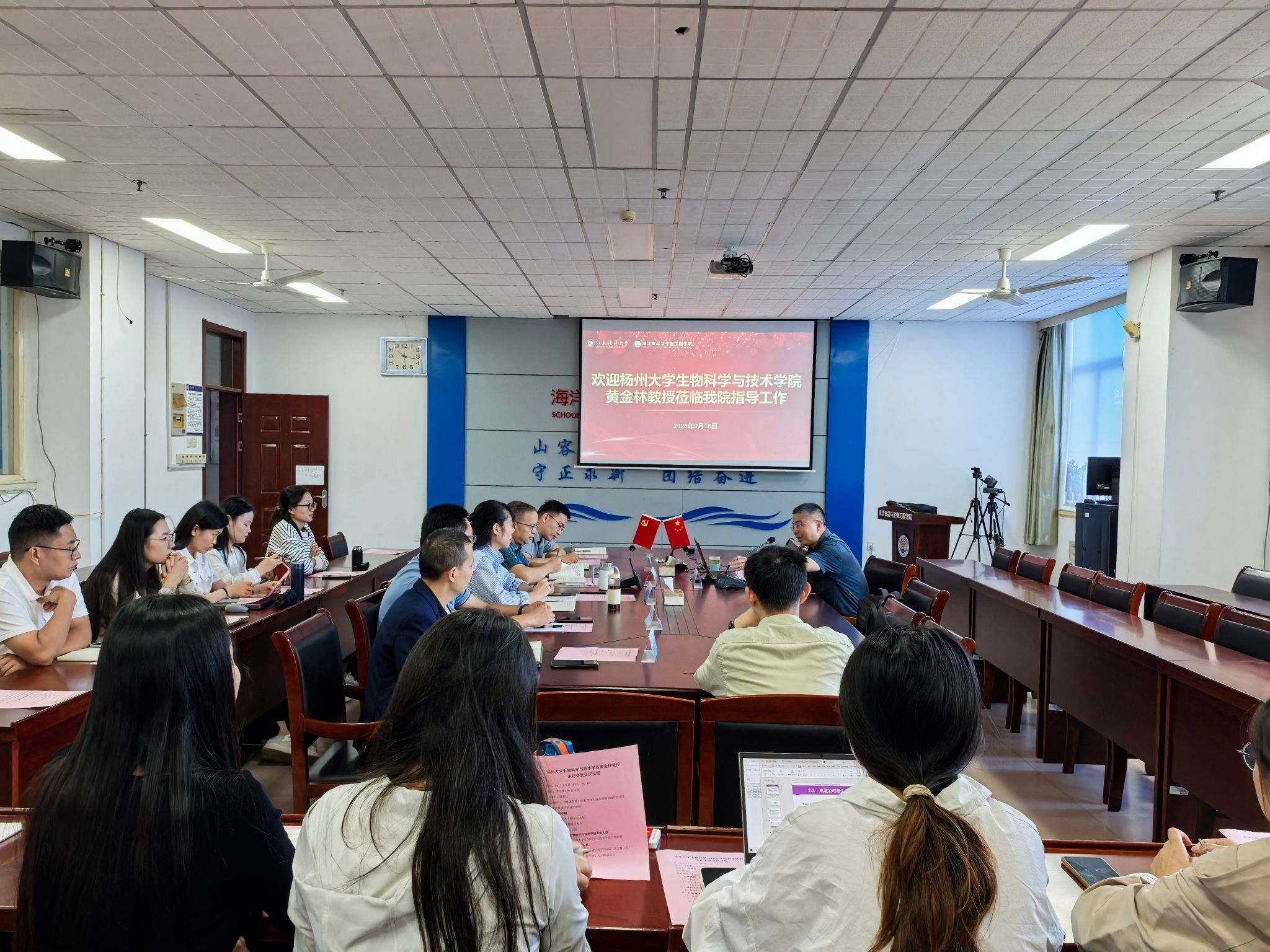 9月18日上午,扬州大学黄金林教授受邀来我院为师生作题为“全健康背景下的食源性人兽共患病原流行传播生态致病性及控制技术进展”的学术报告。本次学术报告在文达楼606会议室举行,由海洋食品与生物工程学院副院长(主持工作)盘赛昆主持,学院青年骨干教师参加。