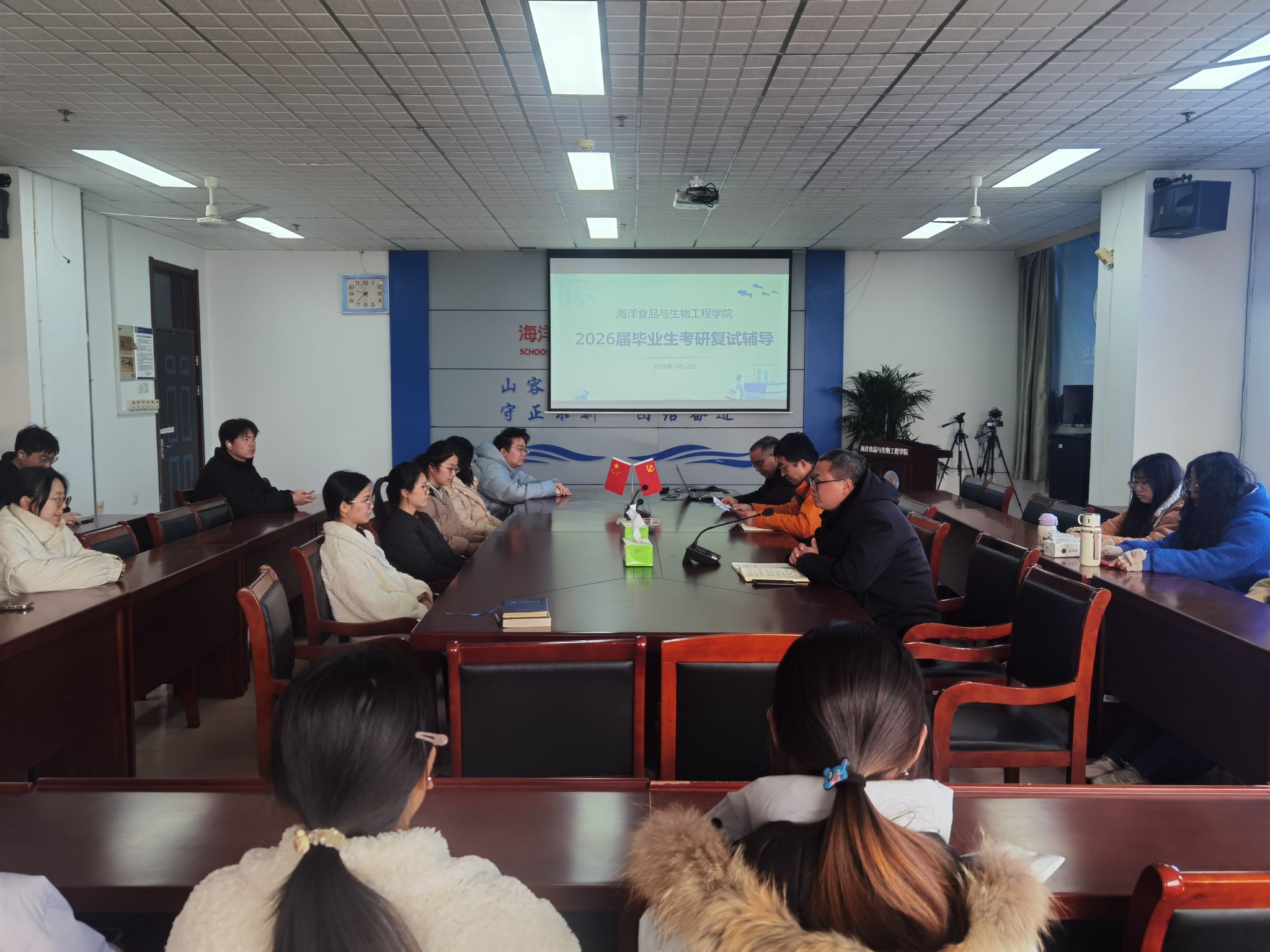 为助力考研过线同学顺利通过复试,3月12日上午,海洋食品与生物工程学院召开2026年考研复试辅导会。副院长盘赛昆(主持工作)、研究生院高振玉老师、团委书记吴凡参加会议,为即将参加考研复试的同学们提供针对性指导。学院党委副书记郭利主持会议。