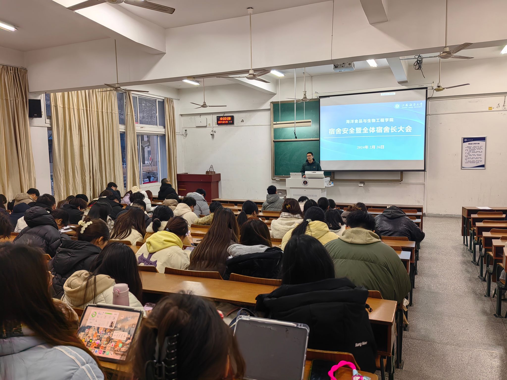 2月26日下午,海洋食品与生物工程学院在文通楼124会议室召开了宿舍安全暨全体宿舍长大会。此次会议旨在进一步加强学院宿舍安全管理工作,提高全体宿舍长的安全意识,确保学生宿舍的安全稳定。