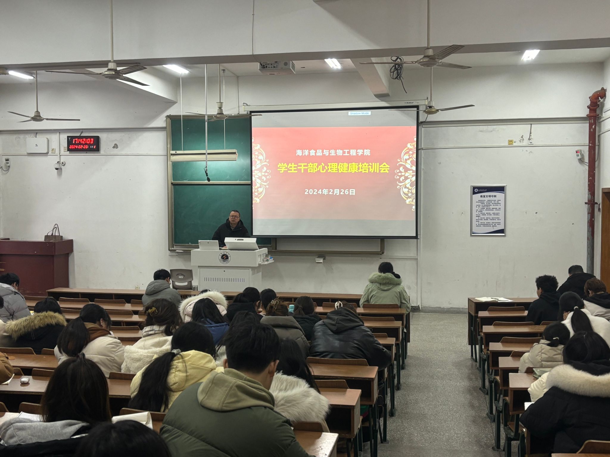 2月26日下午,海洋食品与生物工程学院在文通楼124教室召开心理健康工作培训会。此次会议旨在进一步提升学院心理工作的水平,强化学生心理健康意识,筑牢学生心理健康防线。学院党委副书记郭利、全体辅导员以及全体心理委员共同参加此次培训会。