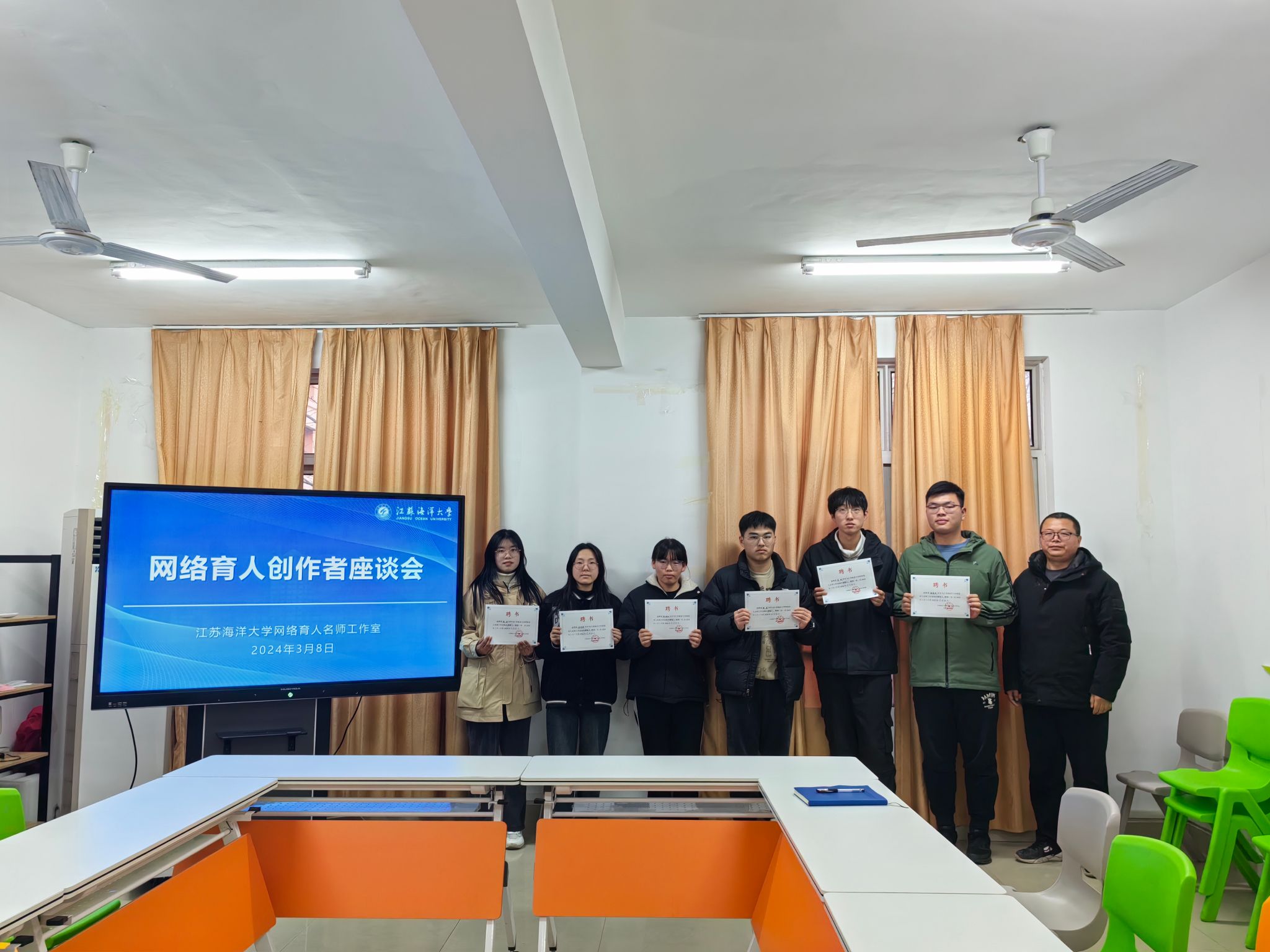 3月8日下午,一场以“做好大学生网络育人”为主题的网络育人创作者座谈会在A9/A10一站式学生社区会议室召开。海洋食品与生物工程学院副书记、校网络育人名师工作室负责人郭利,辅导员吴凡、陈丽媛、杨鑫暖,6位学生创作者共同参加座谈会。座谈会由郭利主持。