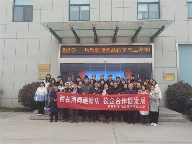 上午10:30,食品科学与工程学院师生党员来到江苏鼎味泰食品有限公司,开展“两在两同”建新功、校企合作促发展活动。在江苏鼎味泰食品有限公司工作人员带领下,参观生产车间、办公室。随后,学院领导与江苏鼎味泰食品有限公司围绕党建工作、校企合作、人才培养等开展洽谈交流。
