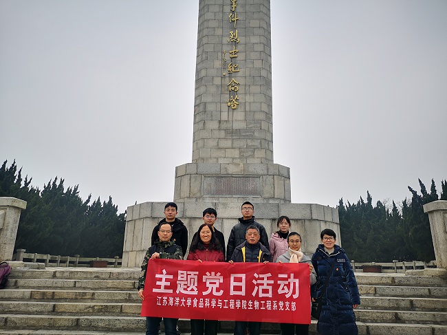 为进一步提高党史学习教育实效,传承伟大建党精神,加强党员党性教育,发挥党员先锋模范作用,食品科学与工程学院党总支于12月11日赴东海县开展“学党史 缅英烈 守初心 强党性”主题党日活动。学院党总支书记田德勇、院长王淑军、副书记郭利以及40多名师生党员共同参加本次活动。