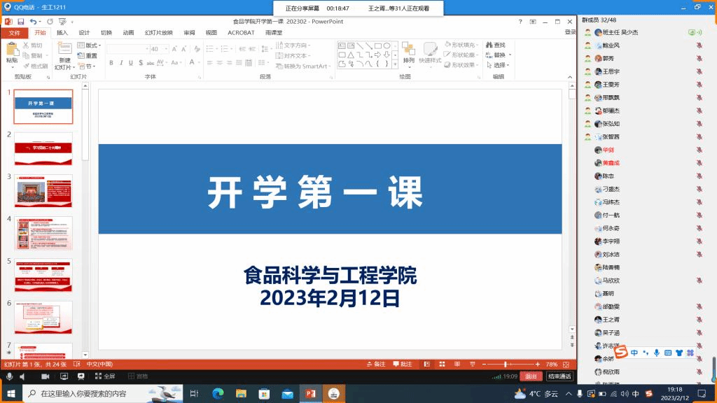 新学期伊始,为激励广大青年学生积极进取,以良好的精神风貌投入到新学期的学习生活中去,食品科学与工程学院16个本科班级于2月10日至2月13日开展了新学期“开学第一课”主题班会活动。