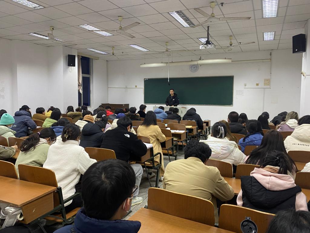 杨鑫暖围绕文明诚信分的认定审核、宿舍安全等进行补充说明,他表示各班级要重视文明诚信分的认定工作,认定过程要公平公正公开;强调宿舍用电安全,班级同学要了解宿舍所在楼层消防器材的位置以及使用方法,提高安全防范意识,宿舍内禁止抽烟,禁止乱扔烟头;提高防诈骗、防盗意识,牢记校园报警电话。