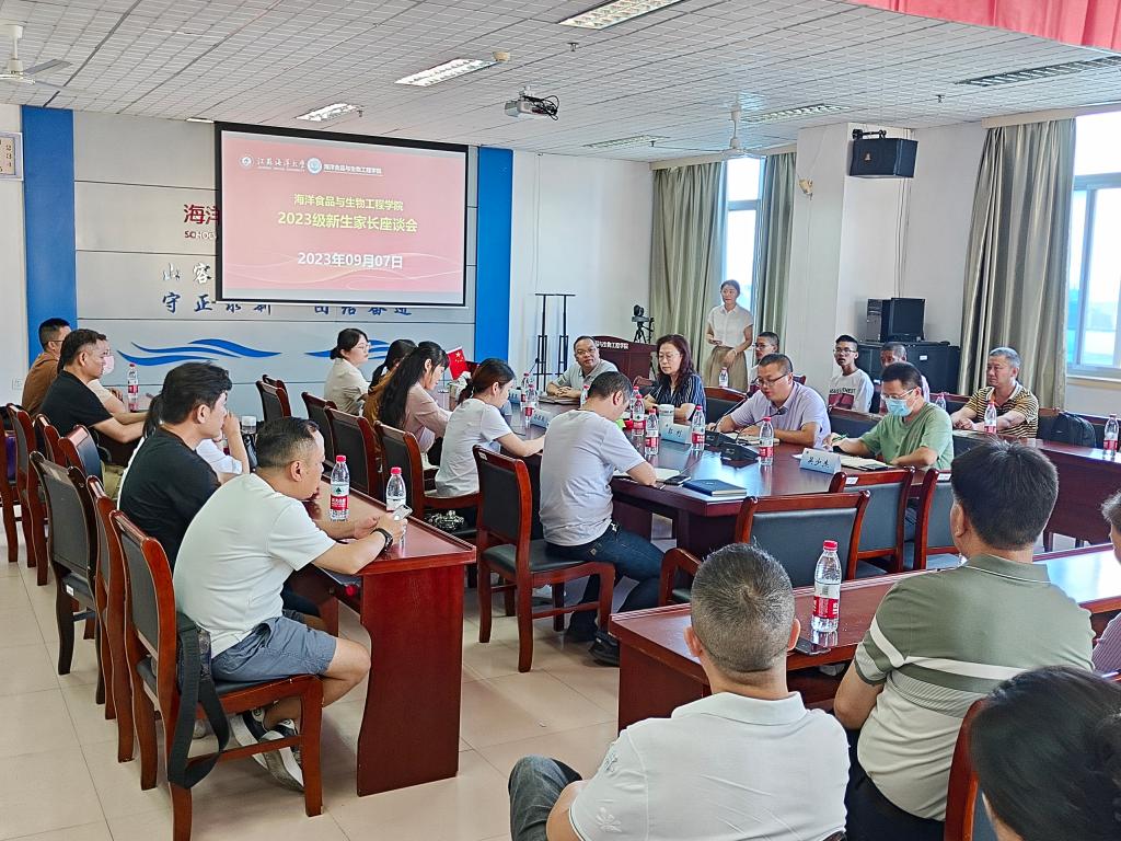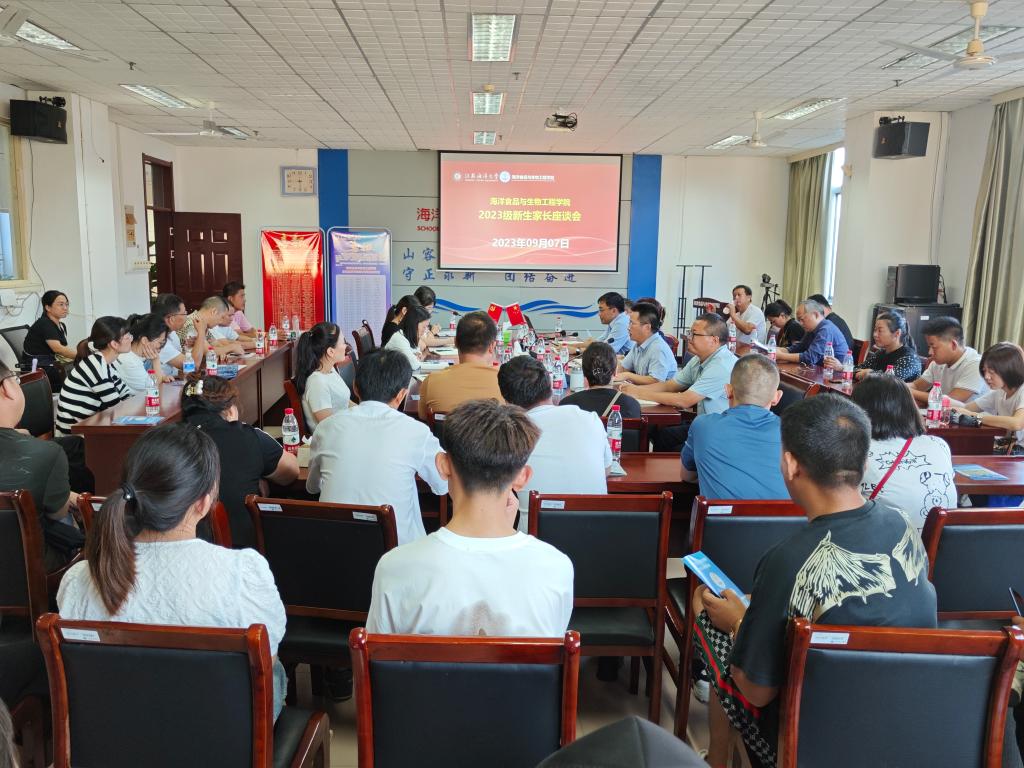 为落实立德树人根本任务,提高人才培养质量,形成家校育人合力,9月7日、9月8日下午,海洋食品与生物工程学院在主楼606召开2023级新生家长座谈会。学院党委书记张兵、院长王淑军、党委副书记郭利、副院长盘赛昆、副院长吴少杰、专业负责人、全体辅导员、新生班主任参加座谈会。会议由郭利主持,线上线下共计200余位家长共同参加。