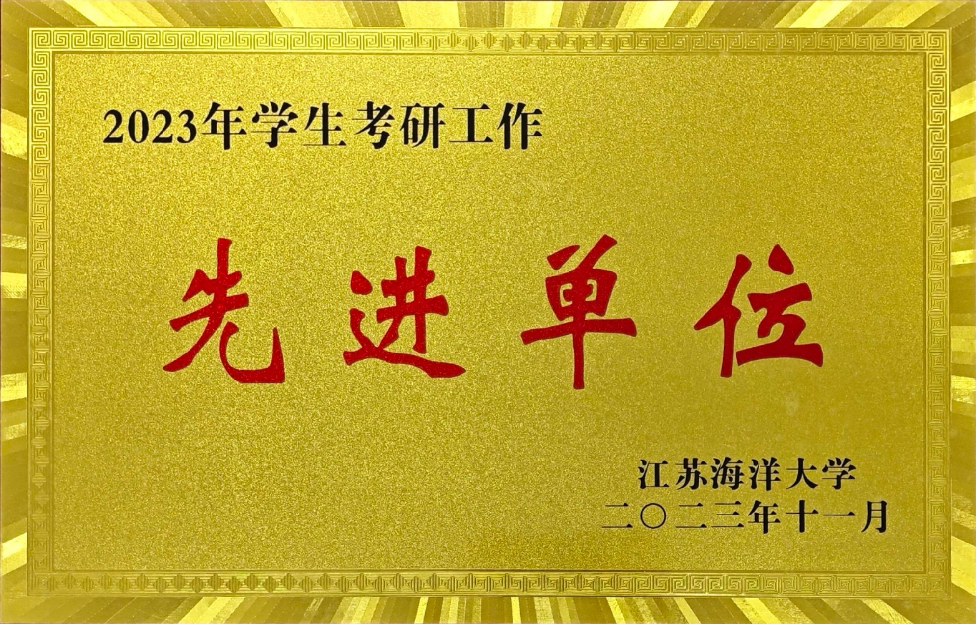 12月13日晚,江苏海洋大学2023年学生工作评优表彰大会在校大礼堂召开,我院再度荣获“考研工作先进单位”。