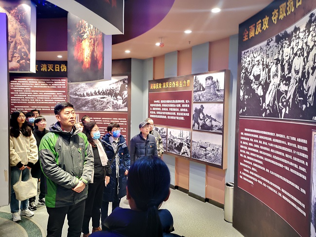 随后,在田德勇的带领下,参加活动的师生党员排成一列,迈着缓慢的脚步,怀着崇高的敬意,瞻仰烈士纪念塔。瞻仰完毕,同志们来到东海县革命纪念馆,在讲解员带领下深入了解东海县人民英勇的革命历史。