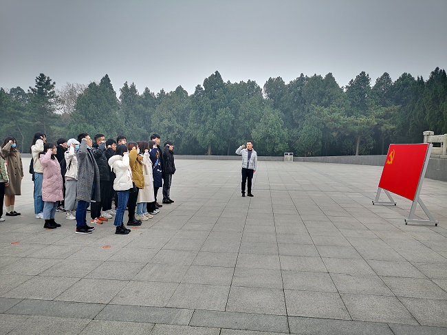 为进一步提高党史学习教育实效,传承伟大建党精神,加强党员党性教育,发挥党员先锋模范作用,食品科学与工程学院党总支于12月11日赴东海县开展“学党史 缅英烈 守初心 强党性”主题党日活动。学院党总支书记田德勇、院长王淑军、副书记郭利以及40多名师生党员共同参加本次活动。